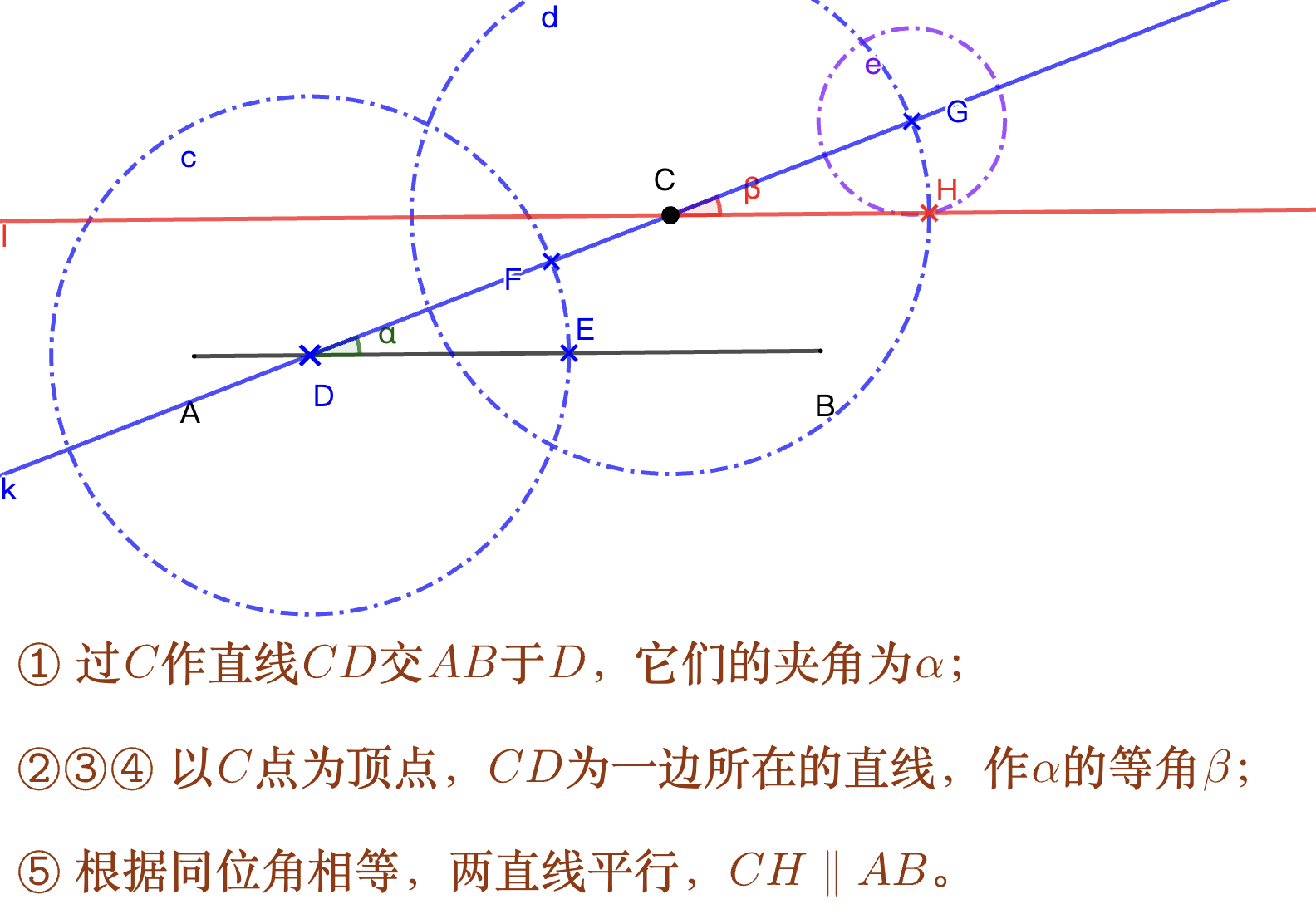 图源:https://www.geogebra.org/m/qb3jfzmy文中较为详细的介绍了各种尺规作图的方法,还有动画演示!下面平行线的作法也是这篇文章里截图的!