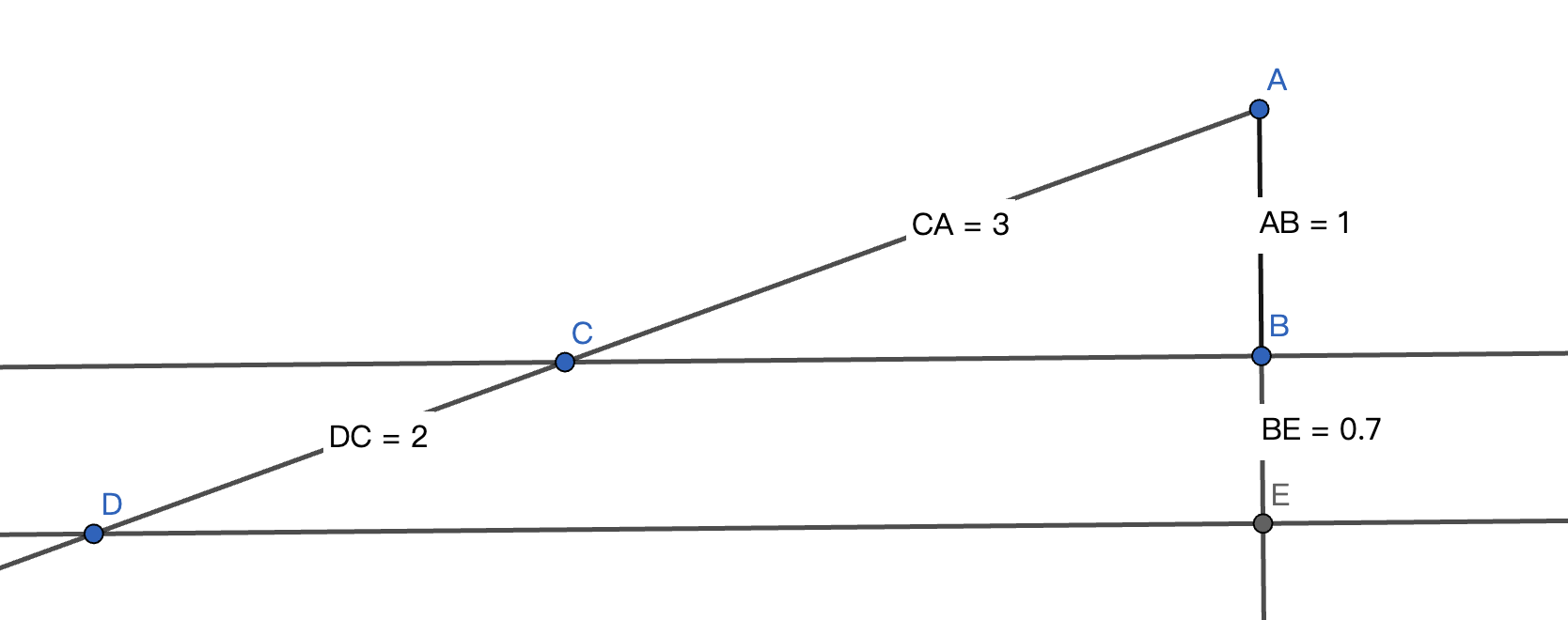 图中$AC=3$,$CD=2$,如果$AB=1$那么就得到$BE=2/3$