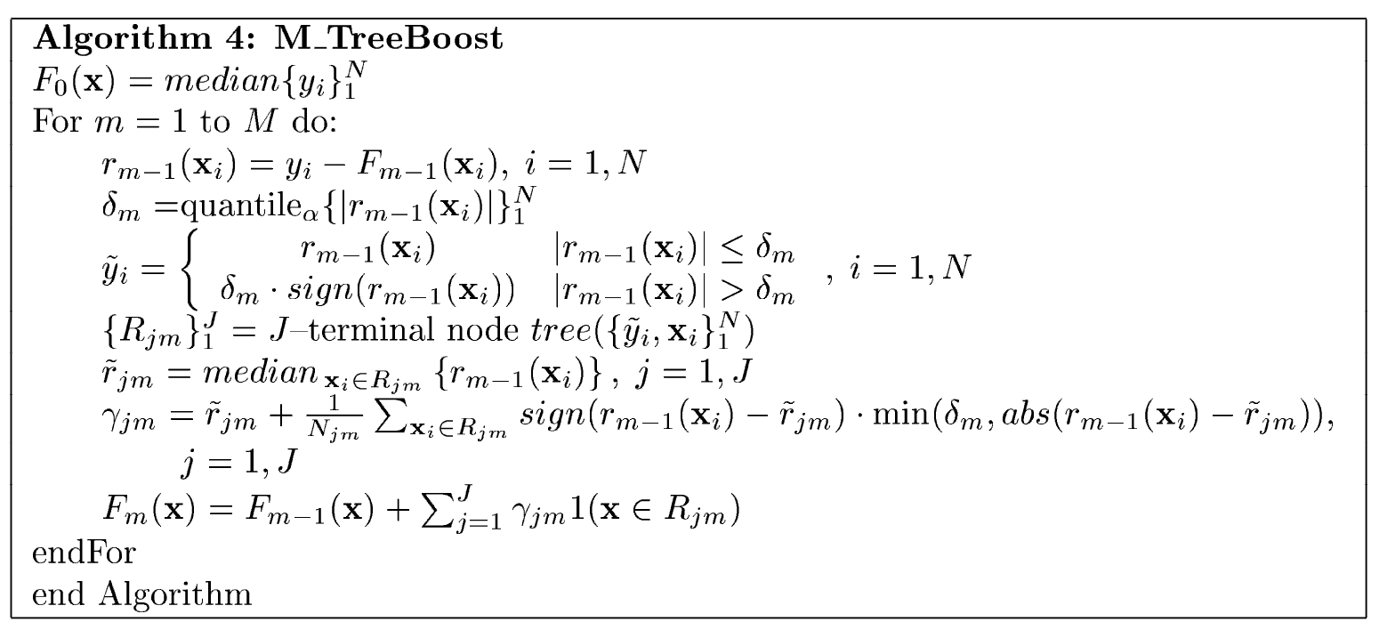 如果使用L1损失(Least absolute deviation),此时负梯度为: $$ -\frac{\partial L(y, F(x))}{\partial F(x)} = -\frac{\partial |y-F(x)|}{\partial F(x)} = -\mathrm{sign}(y-F(x)) $$