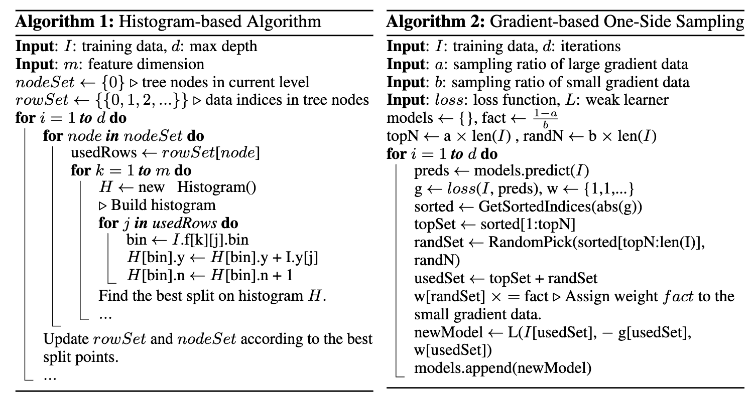 - 基于直方图的节点分裂:加速、节省内存,但是牺牲一定的精度