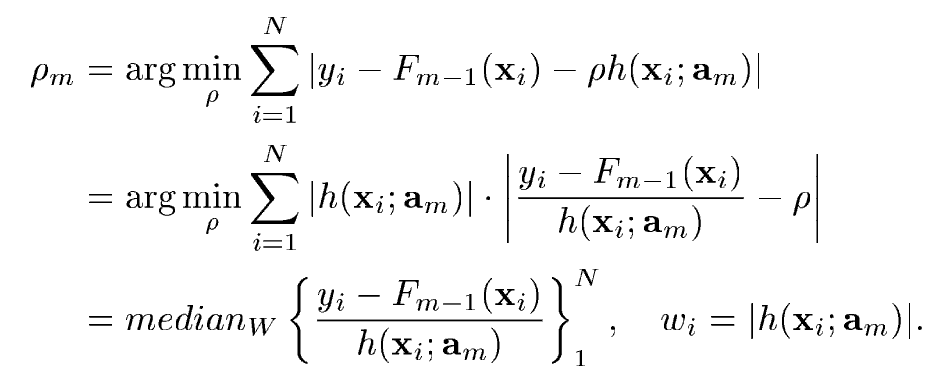 本质上是在函数空间上的数值优化。每次我们寻找一个优化方向$h(x;a_m)$以及最佳的步长$\rho_m$.