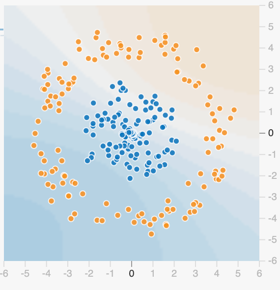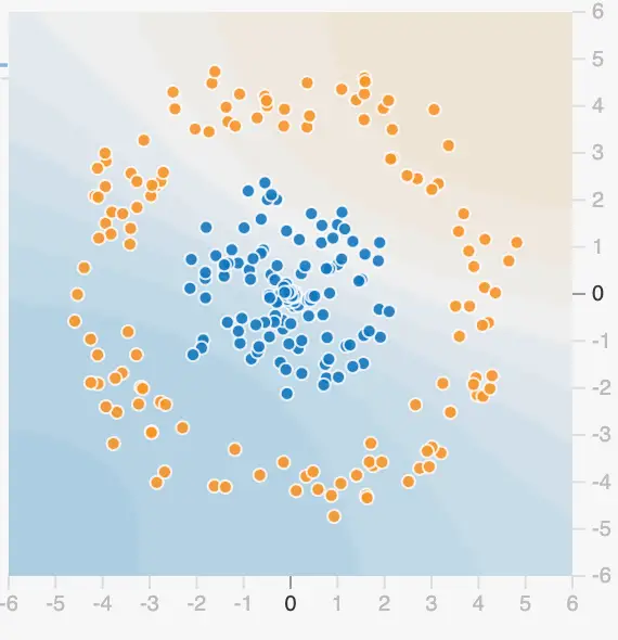 显然,数据一般很难是线性可分的,例如下面这样一组数据: