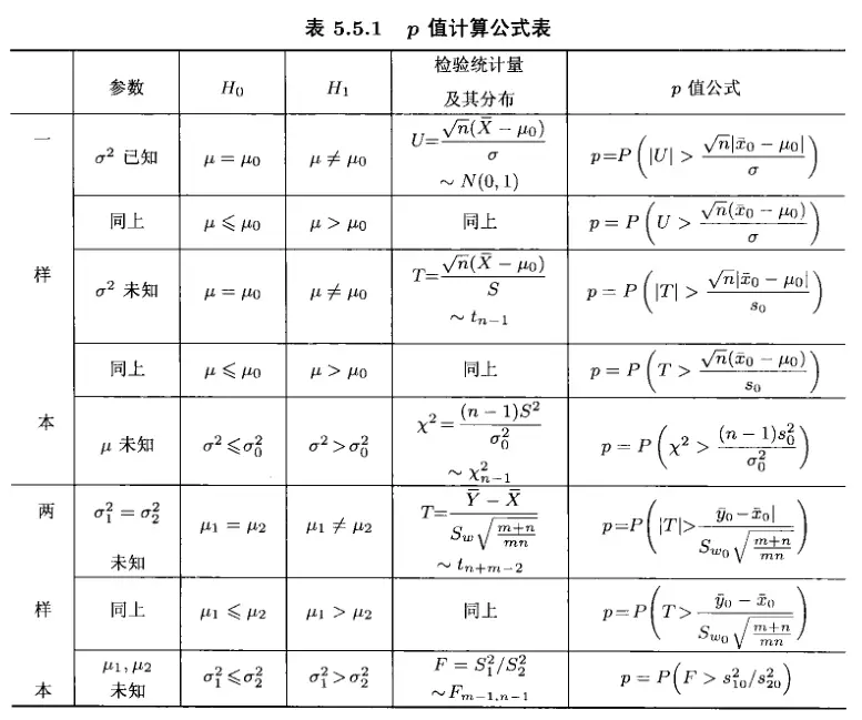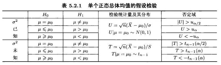 - $H_0$称为原假设(或零假设),$H_1$称为备择假设。